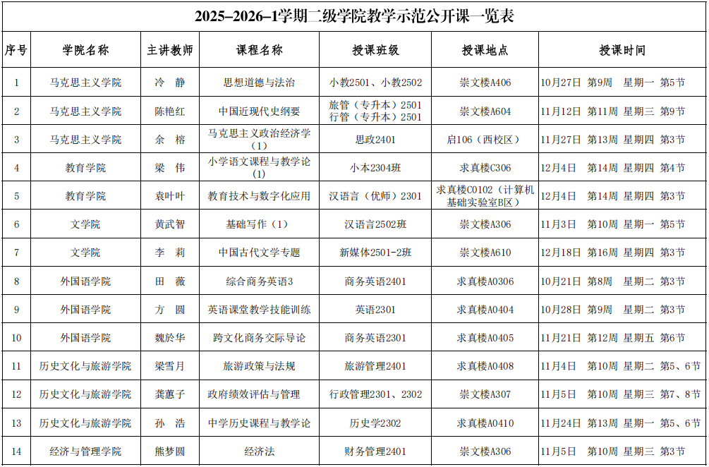 根据学校工作安排,在各学院的积极支持与配合下,本学期教学示范公开课活动已经启动,现将已报送的二级学院教学示范公开课推荐情况公布如下,质管中心部门网站同步公布。请各二级学院认真组织好相关教学示范活动,并鼓励教师跨学院、跨学科观摩交流,共同提升教学能力。