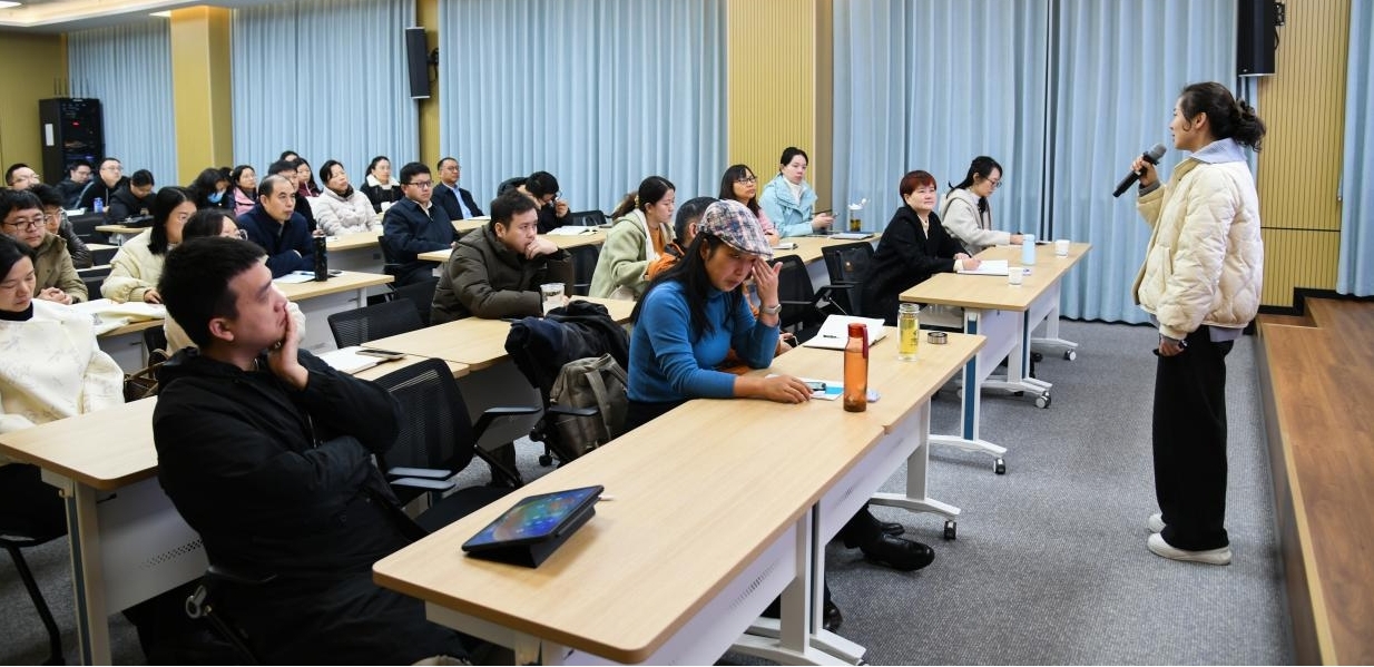 随后的专题讲座中,田媛教授围绕“人工智能与课程教学融合”主题,系统解析了智慧课程建设的实施路径,并以其荣获全国教学创新大赛一等奖的实践经验,详细分享了备赛要点、教学设计创新与方法提炼等核心内容。